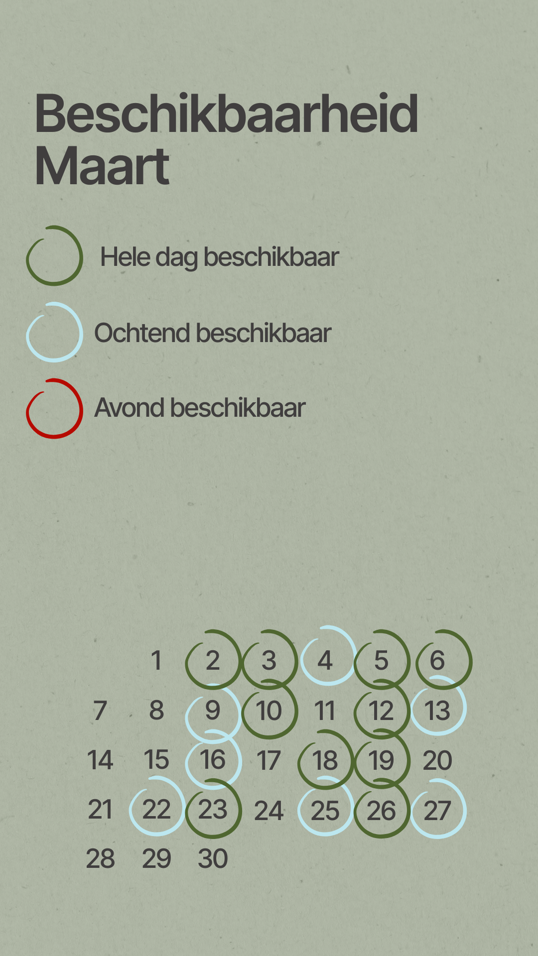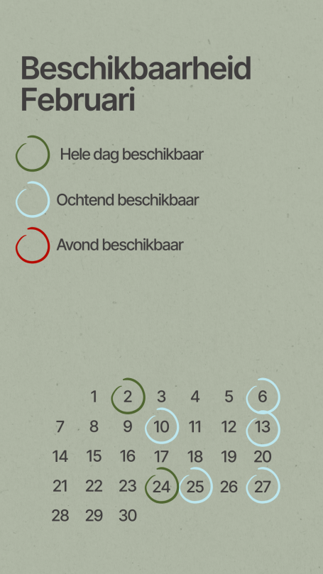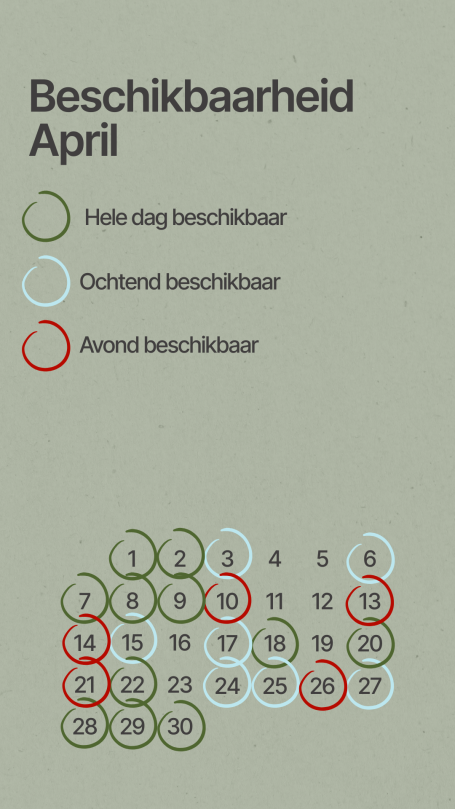 Bekijk mijn beschikbaarheid voor de komende maanden.